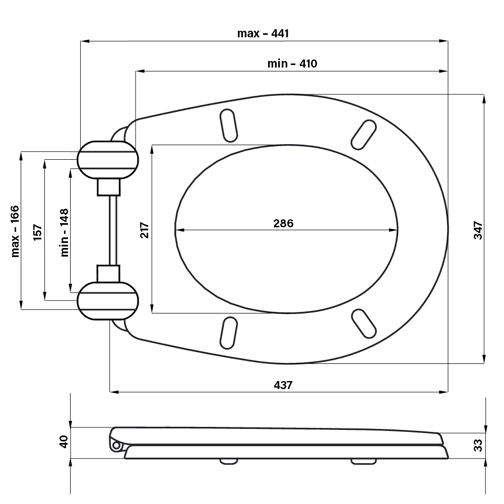 Deska sedesowa wykonana w całości z polipropylenu, o uniwersalnym kształcie, który pasuje do wielu standardowych ceramik sanitarnych dostępnych na rynku.