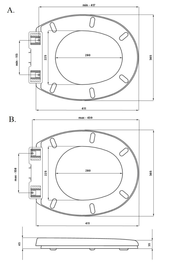 Deska sedesowa wykonana w całości z duroplastu, jest produktem budżetowym, o obniżonej wadze w porównaniu z jej droższym odpowiednikiem. Produkt ten został zaprojektowany w nowatorskim designie w którym klapa deski przykrywa w połowie siedzenie tworząc razem powierzchnię kaskadową. Wymiary deski są bardzo uniwersalne dzięki czemu nasz produkt pasuje do wielu ceramik sanitarnych typu kompaktowych, podwieszanych i wolnostojących.